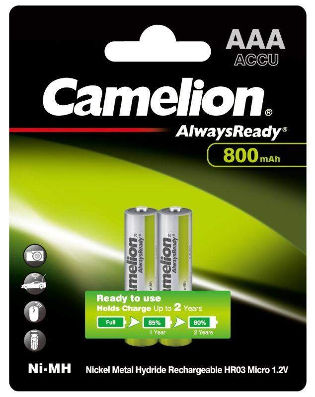 Аккумулятор AAA/HR03 1.2В 800мА.ч Ni-MH Always Ready NH-AAA800ARBP2 BL-2 металлик (блист.2шт) Camelion 7965