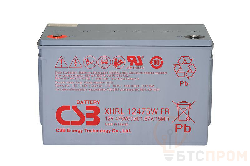 Аккумуляторная батарея CSB XHRL12475W FR — это надежный свинцово-кислотный источник питания в классе VRLA с технологией AGM. Ее номинальное напряжение составляет 12 В, а емкость — 75 Ач, что обеспечивает длительную автономную работу оборудования.