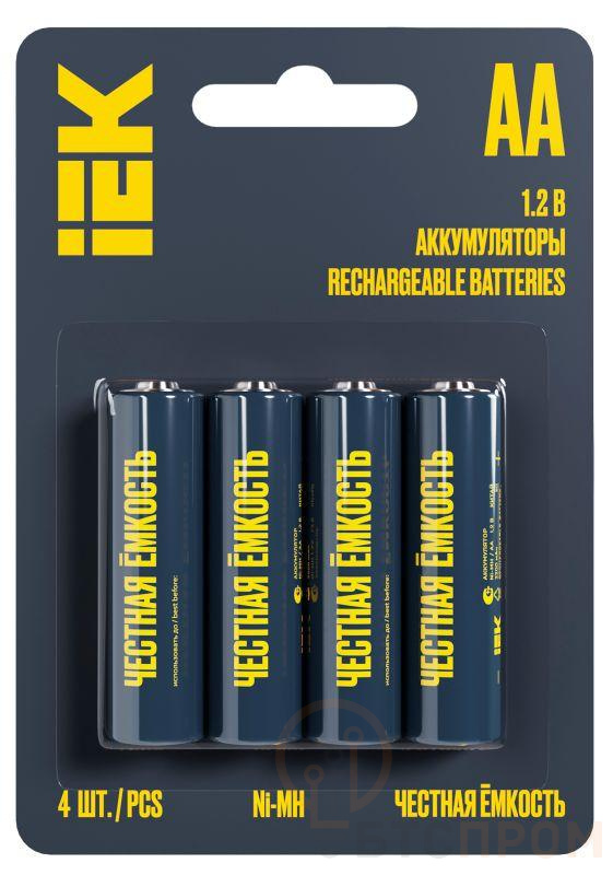 Аккумуляторы пальчиковые никель-металлогидридные IEK Ni-MH AA / HR6 2700 мАч, 4 шт. на блистере. Аккумуляторы IEK «Честная ёмкость» производятся в соответствии с международным стандартом IEC и проходят двойной контроль качества каждой партии. Выбирая аккумуляторы, вы заботитесь об экологии. Их цикл использования дольше, а значит, нужно реже искать места утилизации. Предназначены для использования в фотоаппаратах, фонарях, микрофонах, игрушках и других приборах с высоким энергопотреблением. После покупки важно сначала разрядить аккумулятор до конца, а только после этого снова зарядить. Новые аккумуляторы имеют неполный заряд. Для выхода новых аккумуляторов на полную ёмкость может потребоваться до 3-5 циклов разряда-заряда. Соответствуют ГОСТ 12.2.007.12-88, ГОСТ Р МЭК 62133-1-2019 (IEC 62133-1-2017).