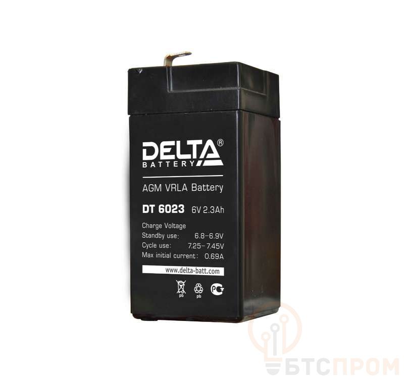 Аккумуляторная батарея Delta DT 6023. Напряжение 6В, емкость 2,3Ач. Имеет низкое внутреннее сопротивление и высокую плотность энергии. Предназначена для охранно-пожарных систем и СКУД. Срок службы 5 лет.