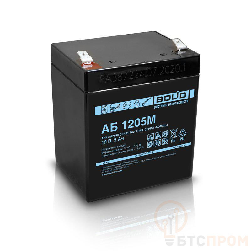 –Аккумулятор стационарный свинцово-кислотный АБ 1205М с регулирующим клапаном Болид 283930