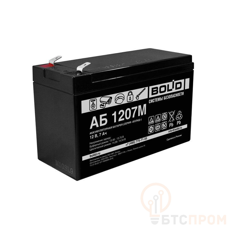 Аккумулятор стационарный свинцово-кислотный АБ 1207М с регулирующим клапаном Болид 283931 фото в каталоге от BTSprom.by