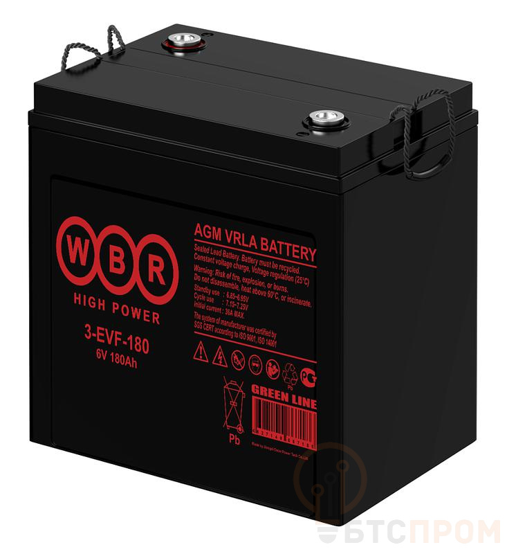 Тяговый аккумулятор WBR 3-EVF-180 – это надежный источник энергии для интенсивной эксплуатации. Модель с номинальным напряжением 6В и высокой емкостью 180 А·ч обеспечивает длительную автономную работу техники.