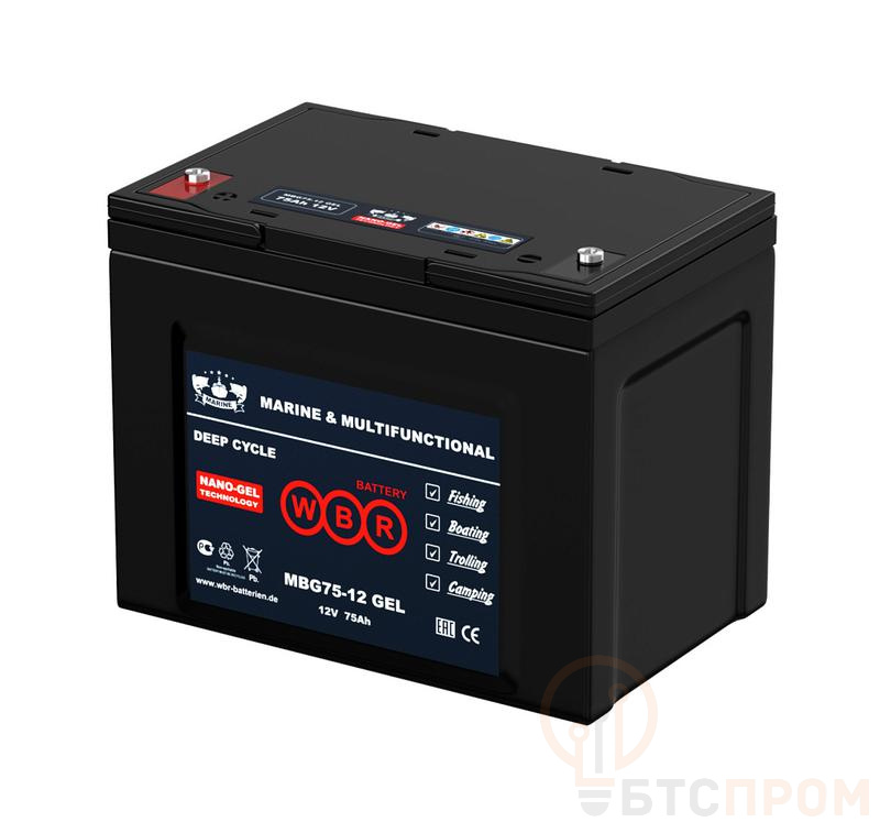 Тяговый гелевый аккумулятор WBR MBG75-12 – это надежный источник энергии для вашего морского транспорта и не только. Модель с номинальным напряжением 12 В и емкостью 75 А·ч изготовлена по передовой технологии GEL (AGM), что обеспечивает абсолютную необслуживаемость, высокую устойчивость к глубоким разрядам и длительный срок службы.