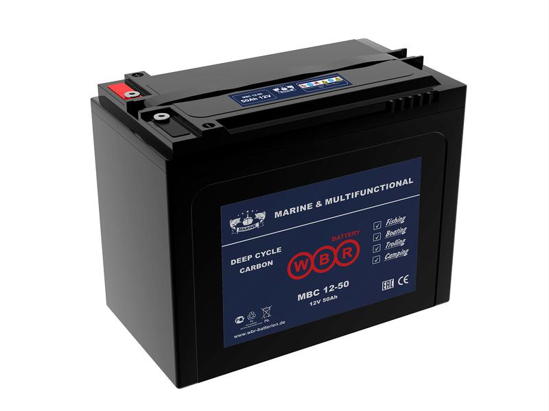 Тяговый карбоновый аккумулятор WBR MBC12-50 – это современное и надежное решение для электропитания лодочных моторов и другого портативного оборудования. Номинальное напряжение составляет 12 В, а емкость – 50 А·ч, что обеспечивает длительную автономную работу.