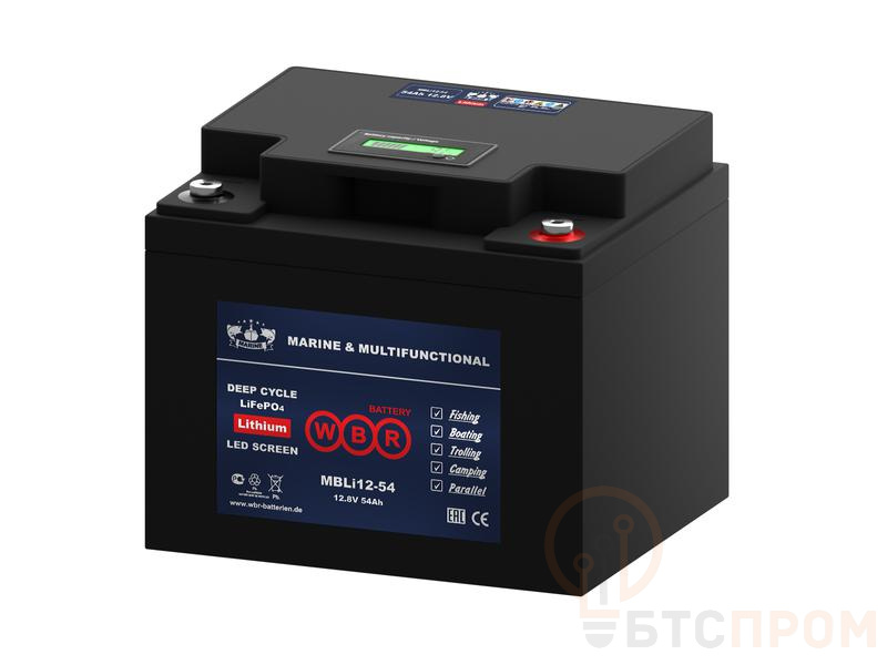Тяговый литиевый аккумулятор WBR MBLi12-54 — современное и надежное решение для электропитания лодочных моторов и другого оборудования. Основанный на безопасной и долговечной технологии литий-железо-фосфата (LiFePO4), он обеспечивает стабильное напряжение 12В и емкость 54 А·ч.