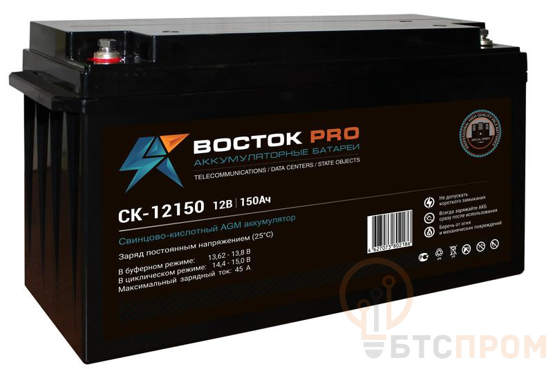 Аккумуляторная батарея ВОСТОК СК-12250. Напряжение 12 В, емкость 250 Ач. Герметизированные, необслуживаемые. Предназначены для использования в ИБП, ЦОД. Срок службы 10 лет.