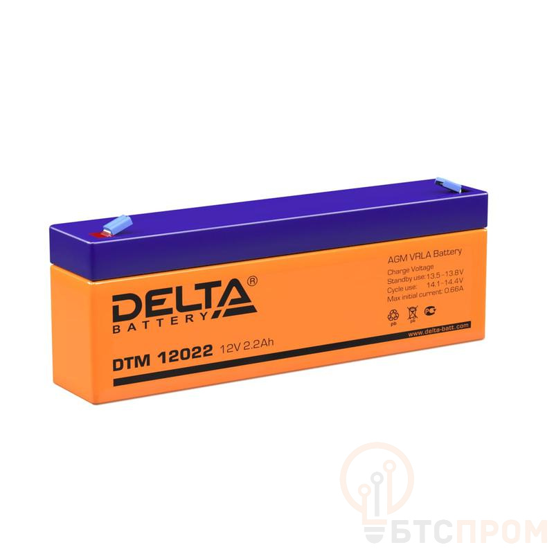 Аккумуляторная батарея Delta DTM 12022. Напряжение 12В, емкость 2,2Ач. Обладает широким спектром применения. Рекомендуется для использования в буферном и в циклическом режимах. Срок службы 6 лет.