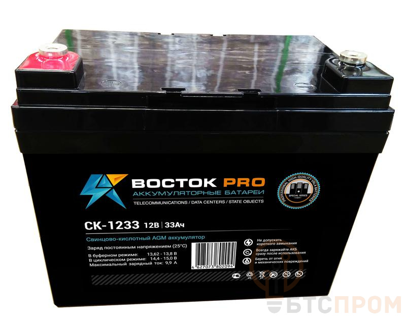 Аккумуляторная батарея ВОСТОК СК-1255. Напряжение 12 В, емкость 55 Ач. Герметизированные, необслуживаемые. Предназначены для использования в ИБП, ЦОД. Срок службы 10 лет.