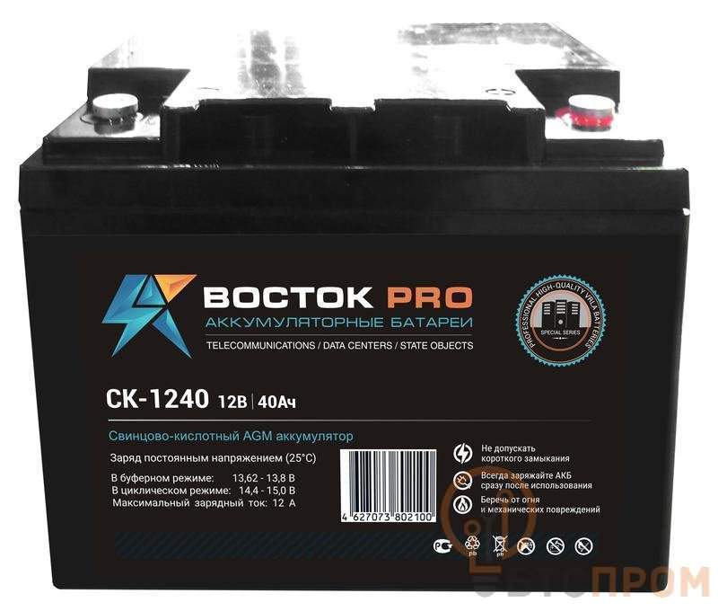 Аккумуляторная батарея ВОСТОК СК-1265. Напряжение 12 В, емкость 65 Ач. Герметизированные, необслуживаемые. Предназначены для использования в ИБП, ЦОД. Срок службы 10 лет.