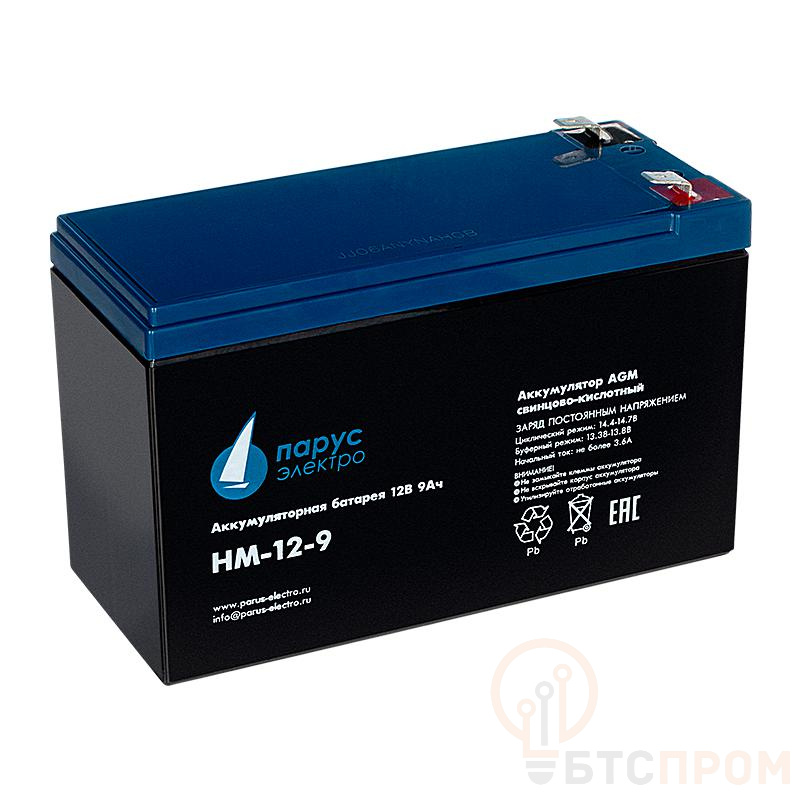 Аккумуляторная батарея HM-12-9 от бренда ПарусЭлектро — это надежный свинцово-кислотный источник питания, предназначенный для широкого спектра применений. Номинальное напряжение устройства составляет 12 В при емкости 9 А·ч, что обеспечивает стабильное энергоснабжение различных приборов и систем.