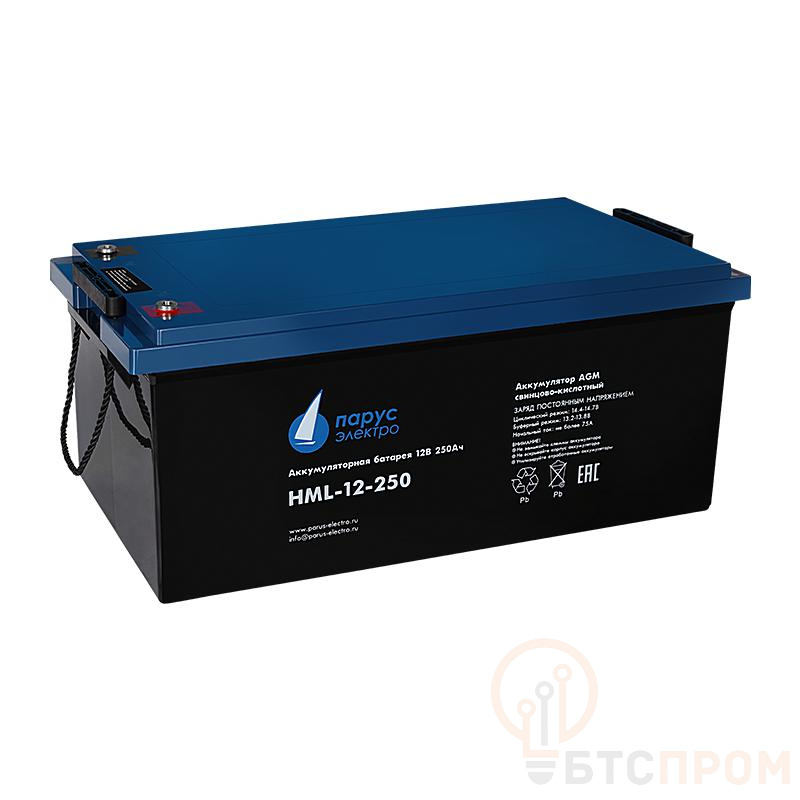 Свинцово-кислотная аккумуляторная батарея HML-12-250 от ПарусЭлектро — это надежный источник резервного питания, предназначенный для длительной работы в циклическом и буферном режимах. Модель обладает номинальной емкостью 250 А·ч при напряжении 12 В, что обеспечивает продолжительное энергоснабжение подключенного оборудования.