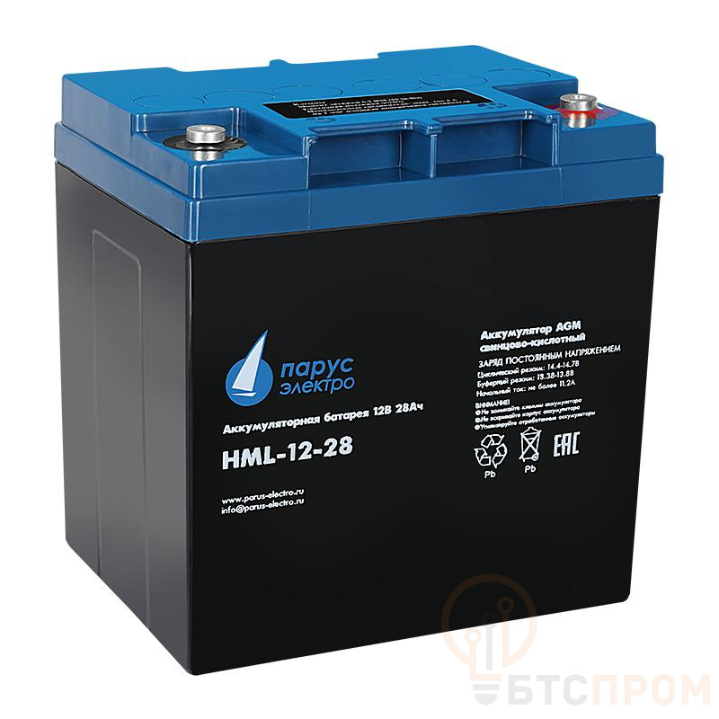 Аккумуляторная батарея HML-12-28 от ПарусЭлектро — это надежный свинцово-кислотный источник питания, предназначенный для продолжительной работы в различных устройствах. Номинальное напряжение батареи составляет 12 В, а емкость — 28 А·ч, что обеспечивает стабильное энергоснабжение.