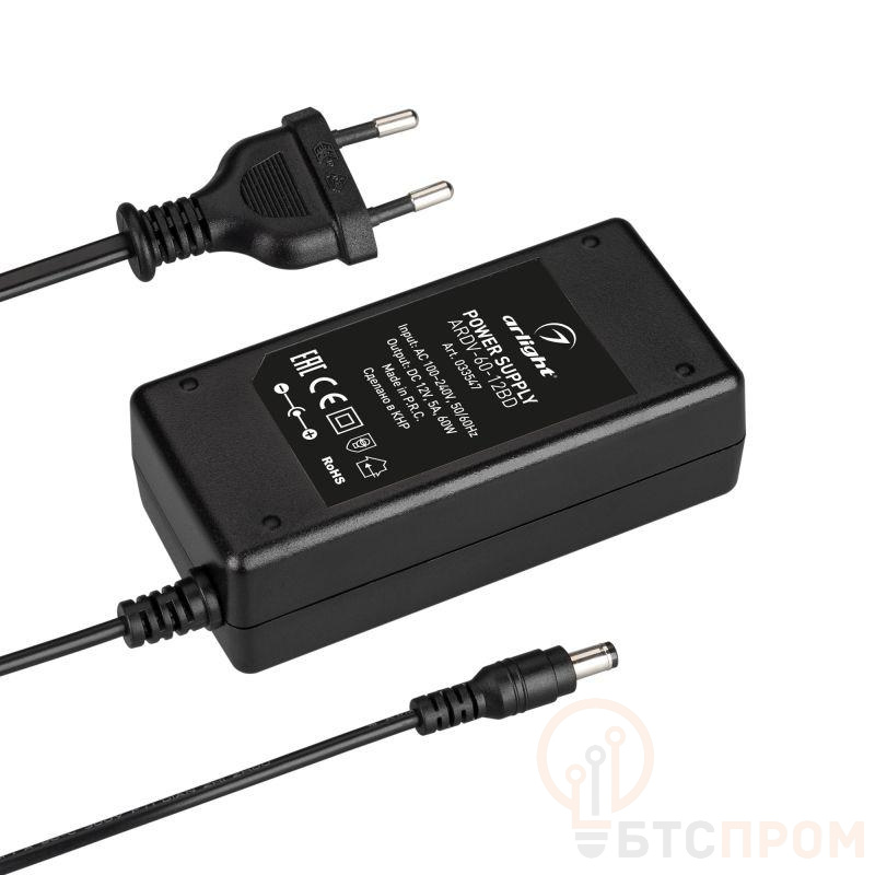 Сетевой адаптер с гальванической развязкой для светодиодных изделий. Входное напряжение 100-240 VAC. Выходные параметры: 12 В, 5 А, 60 Вт. Негерметичный пластиковый корпус IP 20. Габаритные размеры длина 103 мм, ширина 50 мм, высота 34 мм (размер без вилки). Длина кабеля 1.5 м, коннектор 5.5x2.1x10мм. Гарантийный срок 3 года.