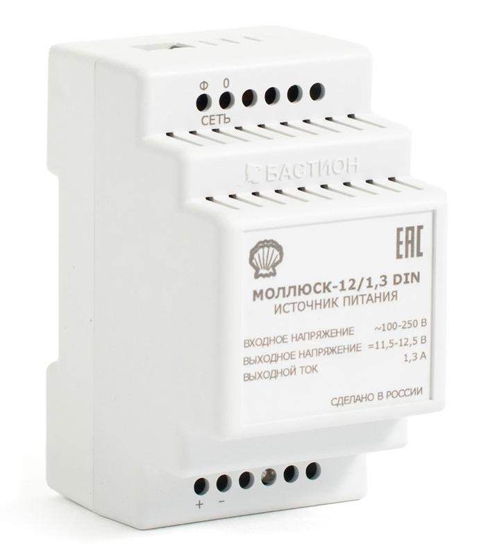 Источник питания 12 В, 1,3 А. Расширенный сетевой диапазон — 100...250 В. Корпус на DIN-рейку, защита выхода от КЗ и перегрузки, прочность изоляции — 3 кВ.