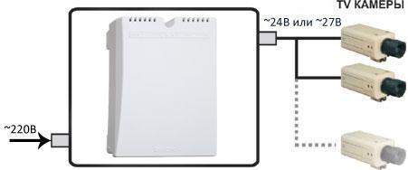 Сетевой (не бесперебойный) источник питания. Выходное переменное напряжение — 24 В или 27 В, 50 Гц. Максимальный ток выхода — 5 А. Выход 27 В используется для компенсации падения напряжения на длинной линии.