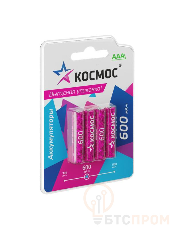 Аккумуляторная батарея AAA/R03 от бренда КОСМОС – это надежное и экономичное решение для питания вашей электроники. Модель KOCR03NIMH600mAh4BL обладает емкостью 600 мА·ч и выполнена по современной технологии Ni-MH (никель-металлгидрид), что обеспечивает стабильное напряжение 1.2В, устойчивость к эффекту памяти и возможность многократной перезарядки.
