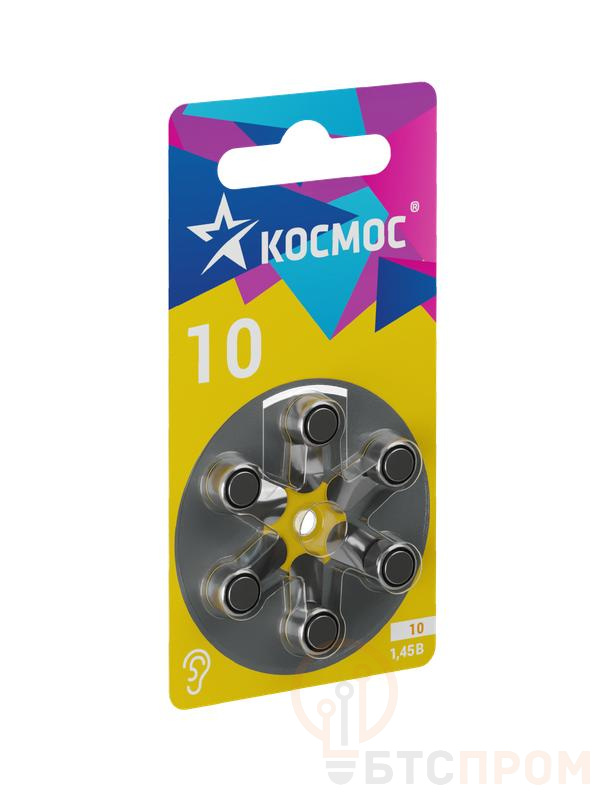 Элемент питания воздушно-цинковая для слуховых аппаратов ZA10 (10 PR70 DA230 V10) 1.45В (уп.6шт) КОСМОС KOCZA-10BL6