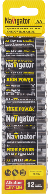 –Элемент питания алкалиновый 93 175 NBT-NPE-LR6-BP12 NAVIGATOR 93175