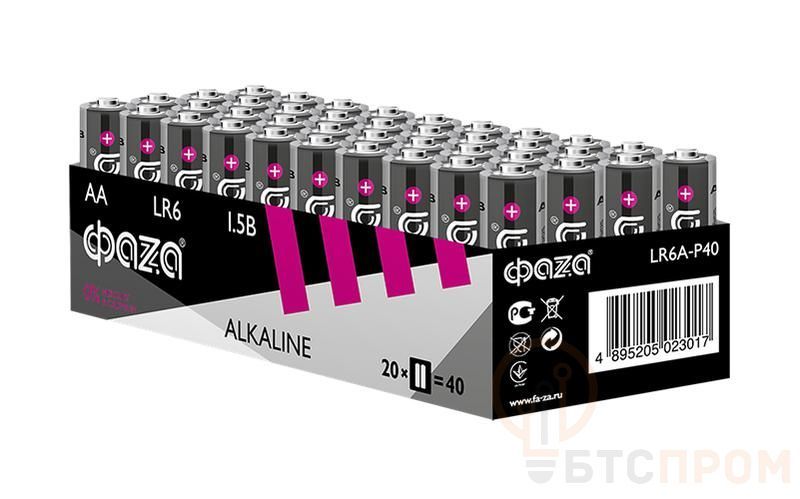 Неперезаряжаемый щелочной элемент питания типоразмера АА / LR6. Ном. напряжение 1,5В. Упаковка - 40 шт. в термоусадочной пленке, внутри расфасовка по 2 шт. Предназначен для использования в приборах с высоким и средним энергопотреблением.