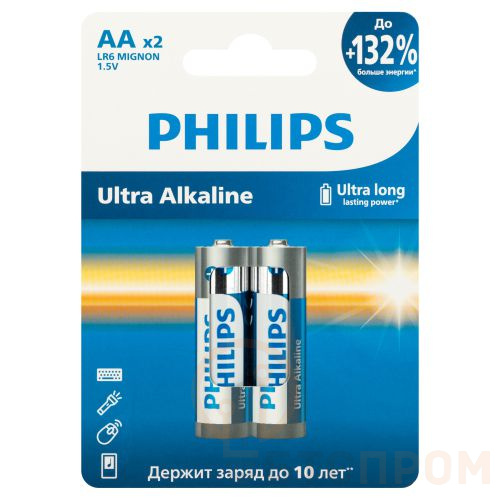 Батарейки Philips Ultra отличаются увеличенным сроком службы и хранения, имеют специальную защиту от протекания, что делает их безопасным и экономичным выбором для дома и офиса.