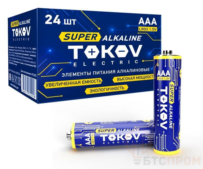 Элемент питания алкалиновый AAA/LR03 (уп.24шт) TOKOV ELECTRIC TKE-ALS-LR3/C24 фото в каталоге от BTSprom.by