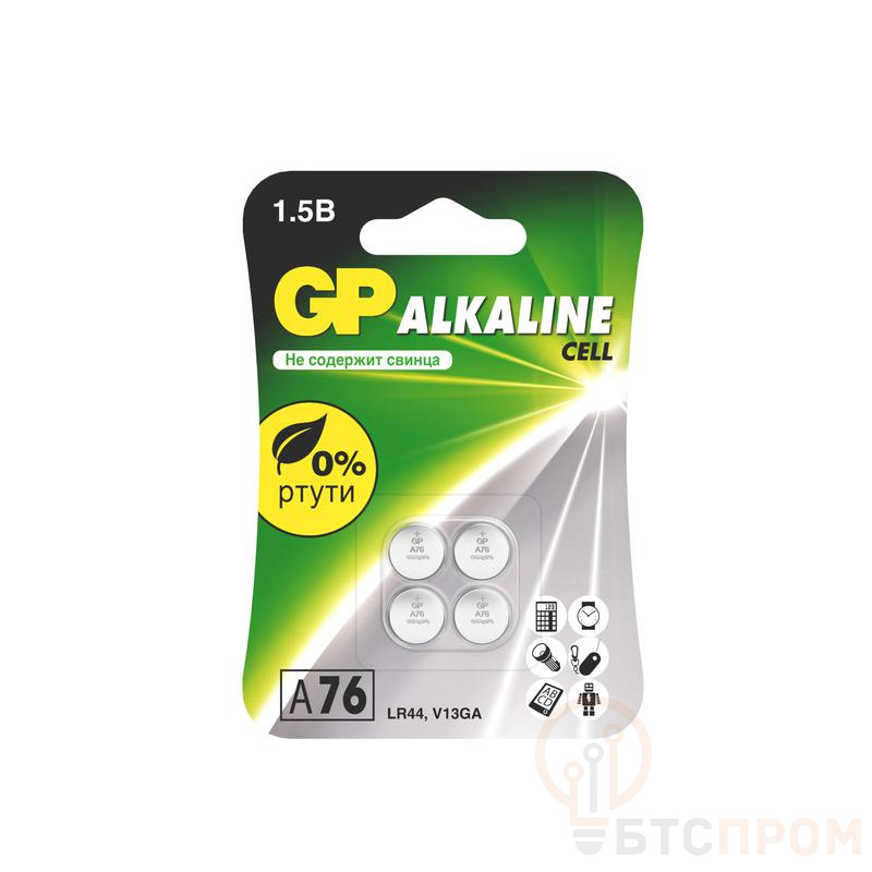 Элемент питания алкалиновый "таблетка" LR44/LR1154/AG13/G13 1.5В (блист.4шт) GP 12288 фото в каталоге от BTSprom.by