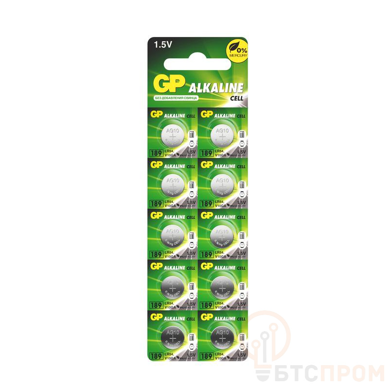 –Элемент питания алкалиновый "таблетка" LR54/LR1130/AG10/G10 1.5В (блист.10шт) GP 2835