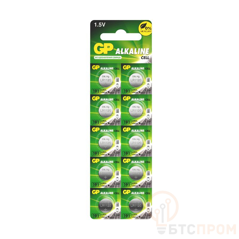 –Элемент питания алкалиновый "таблетка" LR55/LR1120/AG8/G8 1.5В (блист.10шт) GP 2838