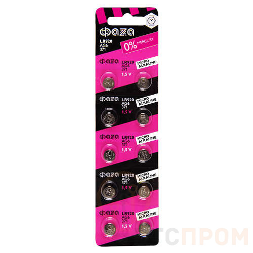 Элемент питания алкалиновый "таблетка" LR69/LR920/AG6/G6 1.5В BL-10 (уп.10шт) ФАZА 5002616
