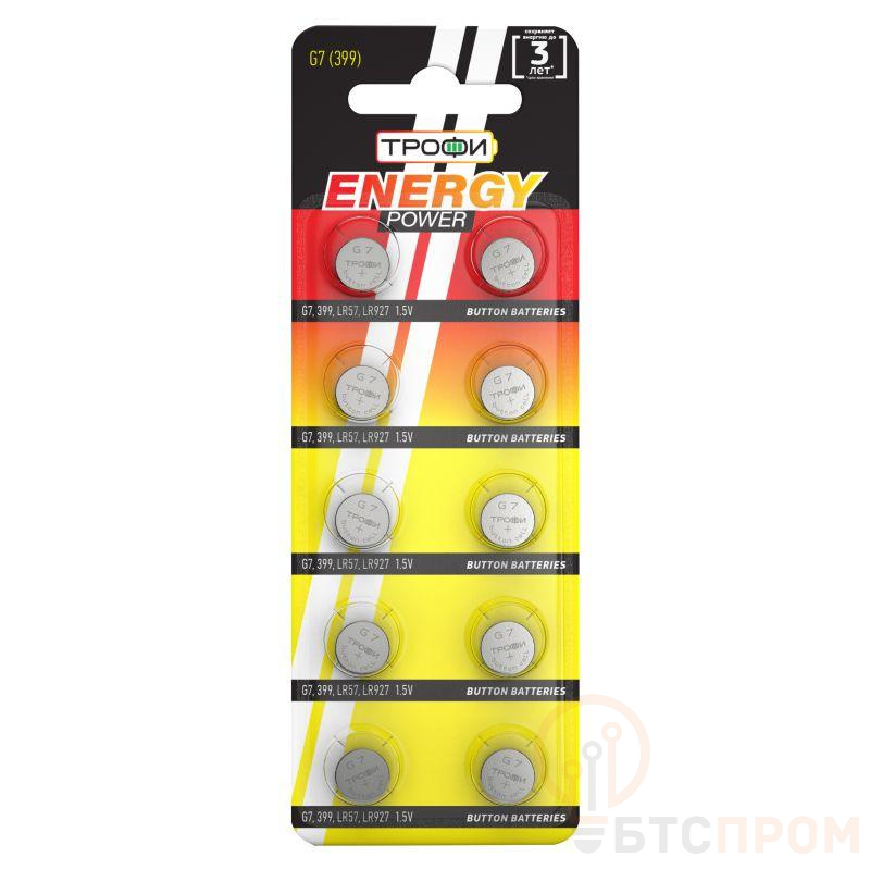Элемент питания алкалиновый "таблетка" LR927/LR57/G7/399) (блист.10шт) Трофи C0036508 фото в каталоге от BTSprom.by