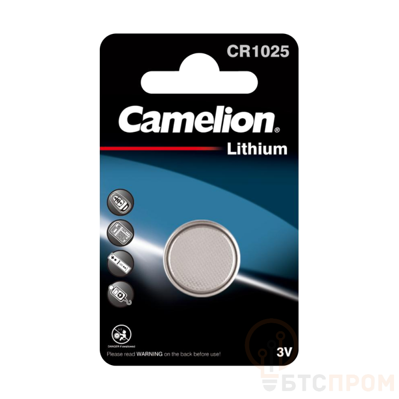 Дисковые литиевые батарейки Camelion предназначены для широкого спектра устройств (датчики, сенсоры, часы, весы, калькуляторы, брелоки). Батарейка Camelion CR1025-BP1B, напряжение 3В, емкость 30мА*ч, кол-во в упаковке 1 шт., размер упаковки 55x92x3 мм, использовать при температуре от - 20 до + 60 °C, хранить при температуре от +10 до +25 °C. Срок хранения 10 лет.