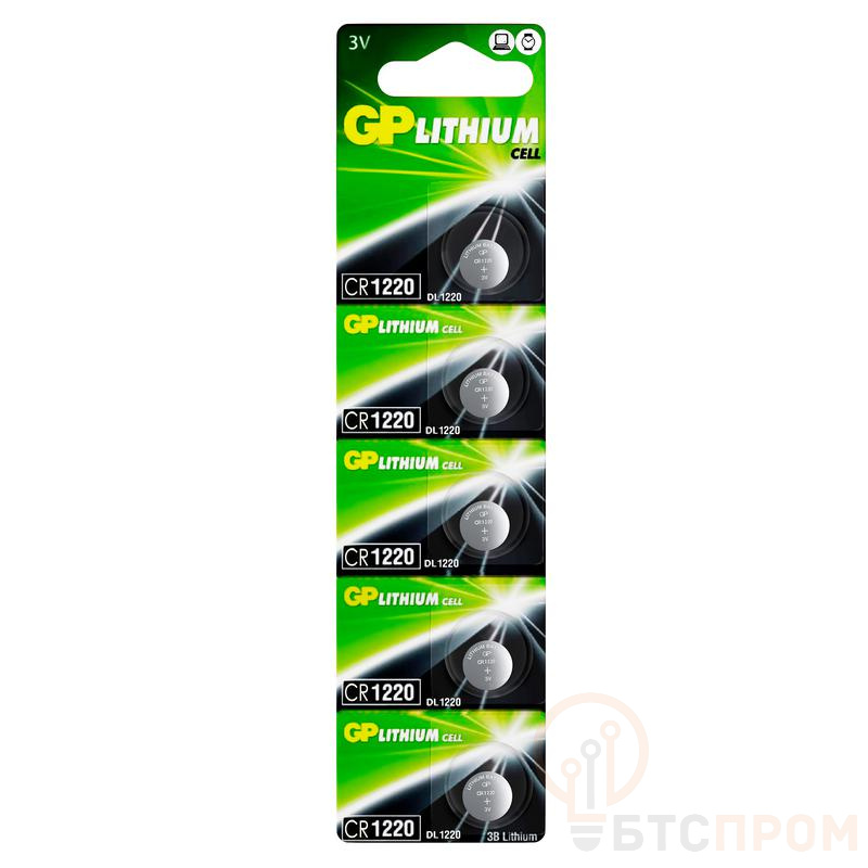 Литиевый элемент питания CR1220 от бренда GP — это надежный источник энергии для компактной электроники. Напряжение элемента составляет 3 В, а его компактная размерность (диаметр 12.5 мм, высота 2.0 мм) позволяет использовать его в устройствах с ограниченным пространством.