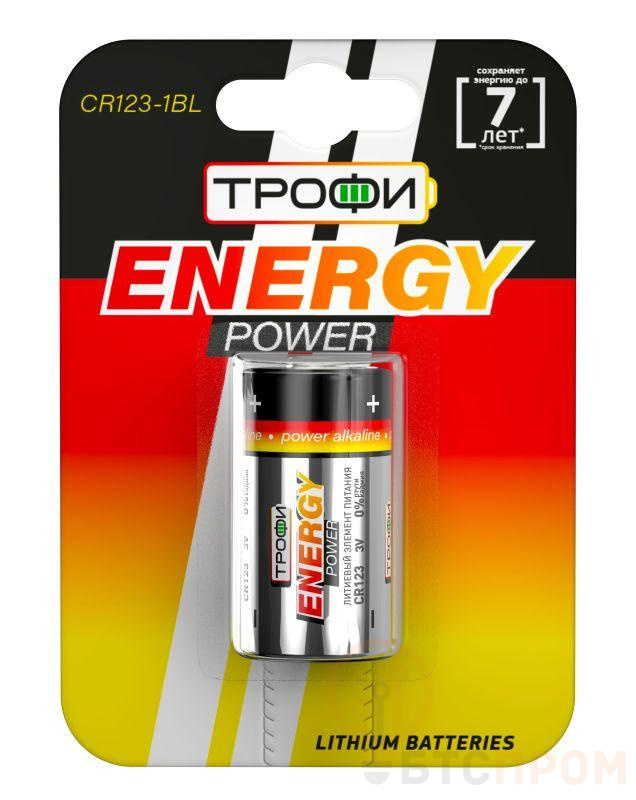 Трофи CR123-1BL ENERGY POWER Lithium - отличный выбор для энергоёмких устройств. Батарея может использоваться фонариках и некоторых других бытовых устройствах в качестве замены батарейкам DL123A.Один из важнейших плюсов литиевых элементов питания - стабильная работа в широком диапазоне температур: от -25 до +35 градусов Цельсия. Емкость батарейки - 1300 мАч.