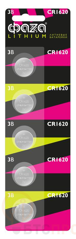 –Элемент питания литиевый CR1620 3В BL-5 (блист.5шт) ФАZА 5027947