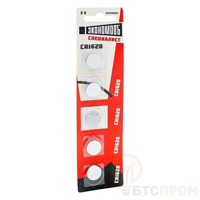 –Элемент питания литиевый CR1620 3В BP-5 (блист.5шт) ЭКОНОМОВЪ EcoCR1620_BP5