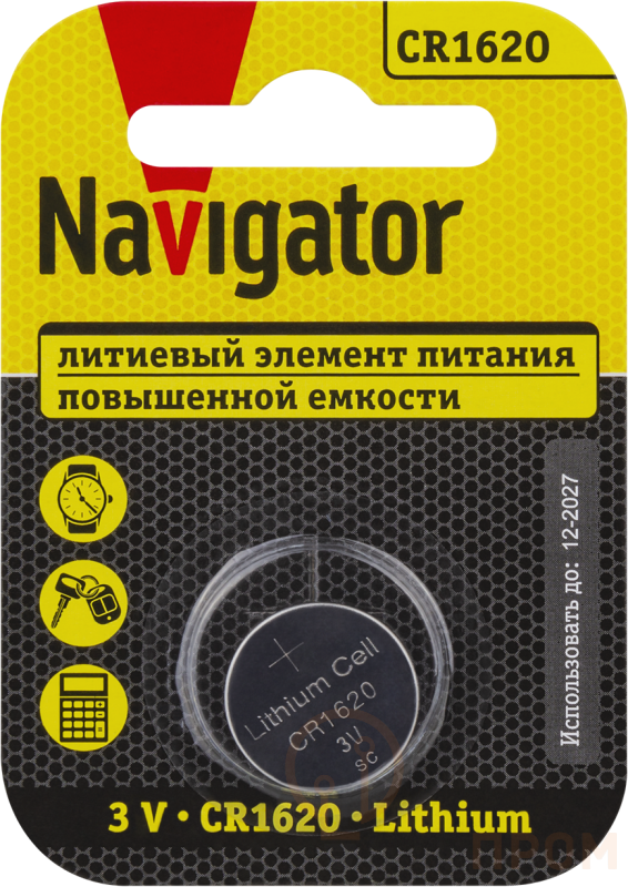 –Элемент питания литиевый CR1620 93 827 NBT-CR1620-BP1 (блист.1шт) NAVIGATOR 93827