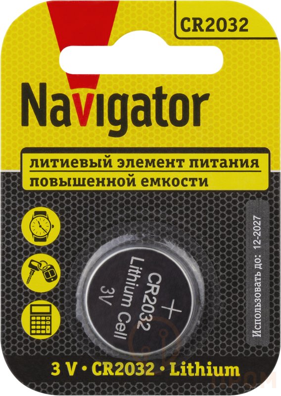 –Элемент питания литиевый CR2032 93 823 NBT-CR2032-BP1 (блист.1шт) NAVIGATOR 93823