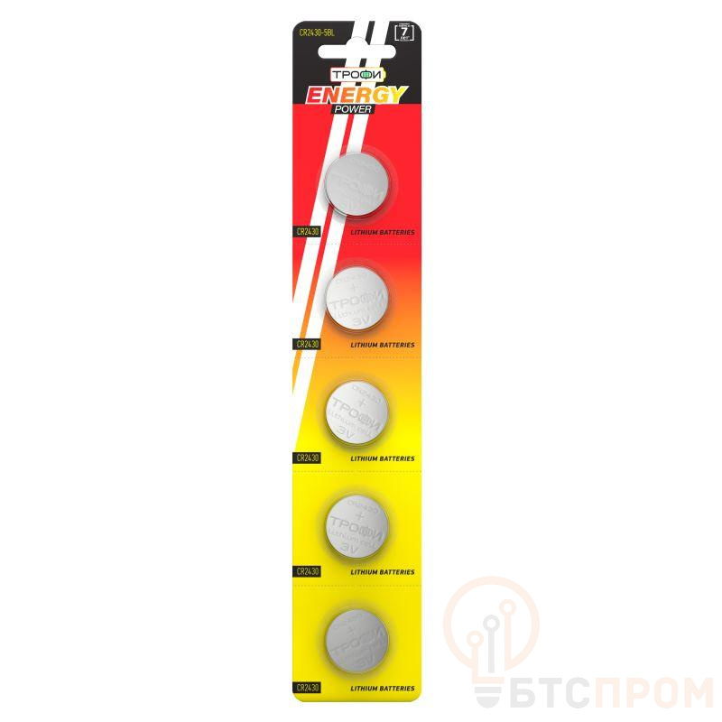Элемент питания литиевый CR2430-5BL (блист.5шт) Трофи C0034061 фото в каталоге от BTSprom.by
