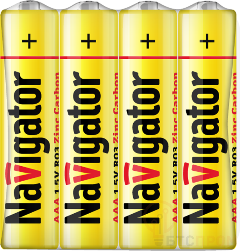 Элемент питания 94 757 NBT-NS-R03-SH4 (шринка 4шт) Navigator 17007 представляет собой цилиндрическую цинково-угольную батарейку типоразмера ААА. Поставляется в упаковке по 4 шт.