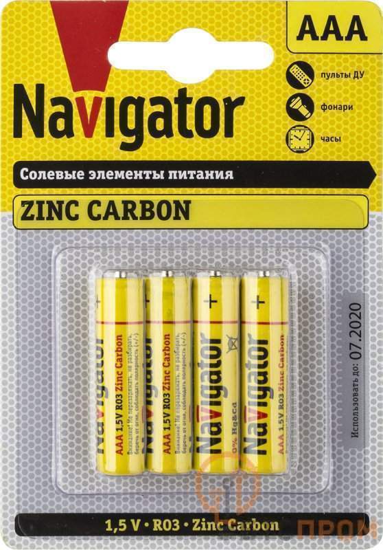 Элемент питания солевой AAA/R03 94 767 NBT-NS-AAA/R03-BP4 (блист.4шт) Navigator 94767 фото в каталоге от BTSprom.by