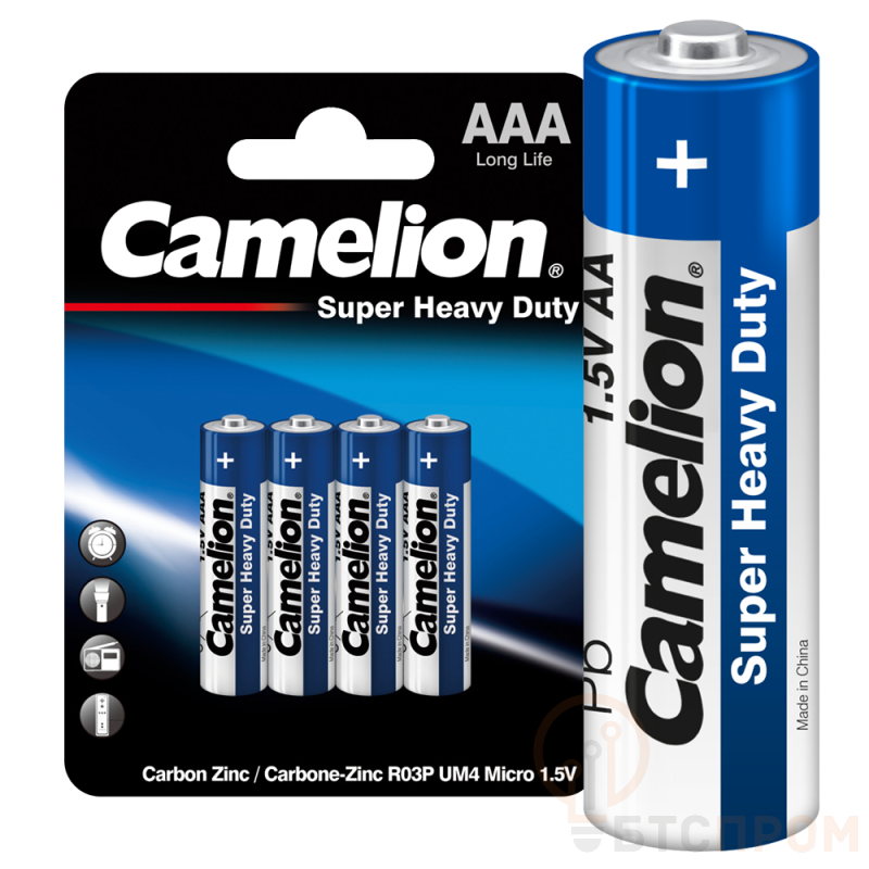Солевые батарейки Camelion предназначены для устройств с равномерным и невысоким энергопотреблением (настенные часы,пульты дистанционного управления, игрушки, фонари и др.) Выше стойкость к утечке электролита. Батарейка Camelion R03P-BP4B, напряжение 1,5В, емкость 550мА*ч, кол-во в упаковке 4 шт., размер упаковки 84x114x15 мм,использовать при температуре от -18 до + 55 °C, хранить в сухом помещении при температуре от +15 до +25°C. Срок хранения 3 года.