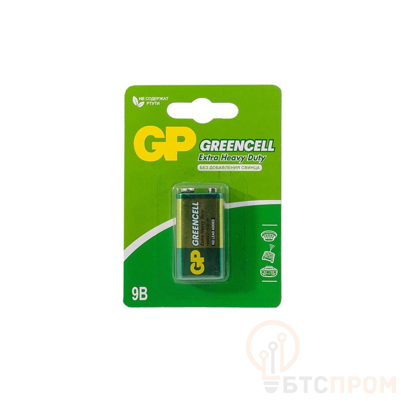 –Элемент питания солевой "крона" 6F22 9В GreenCell (блист.1шт) GP 2795
