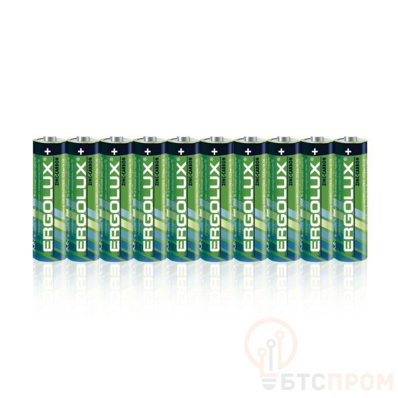 Солевые батарейки Ergolux предназначены для устройств с низким энергопотреблением (настенные часы, пульты дистанционного управления, простые игрушки, фонари). Батарейка Ergolux R6 SR10, напряжение 1,5В, емкость 700 мА*ч, кол-во в упаковке 10 шт., использовать при температуре от -10 до + 40 °C. Срок хранения 3 года.