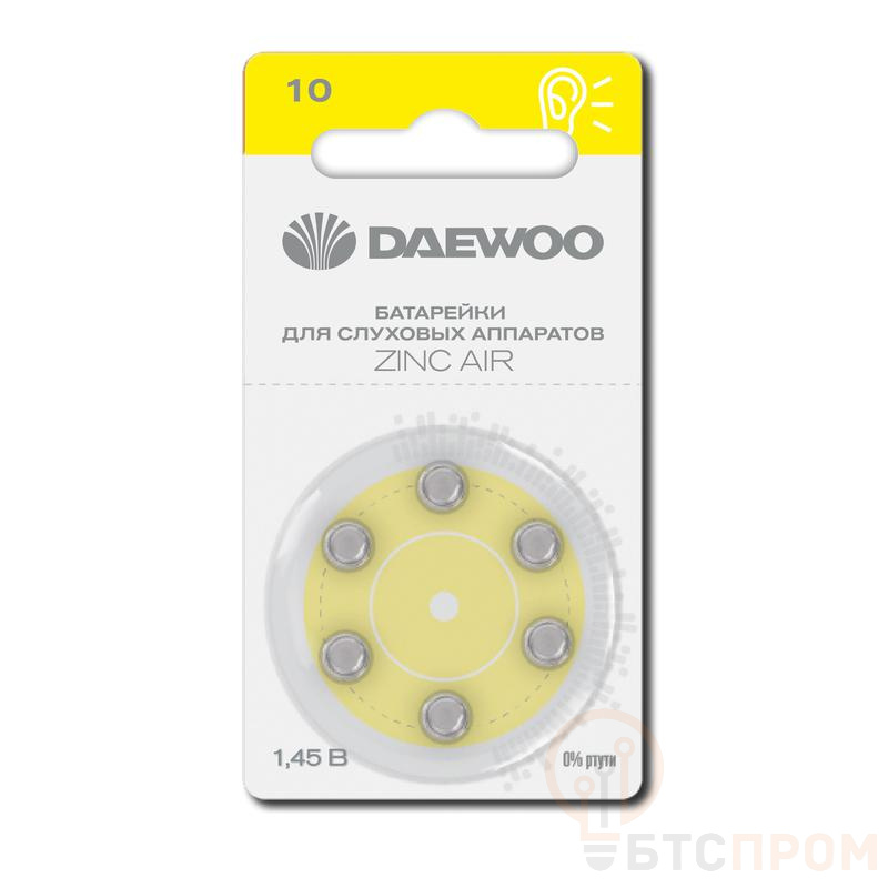 Элемент питания воздушно-цинковый ZA10/PR70 1.45В BL-6 (блист.6шт) для слуховых аппаратов DAEWOO 5060333