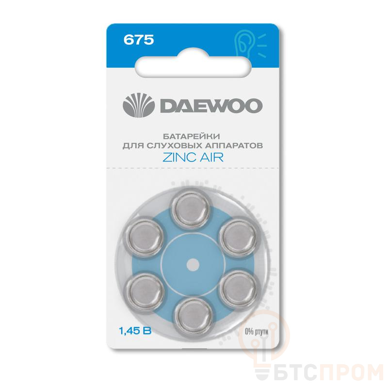 Элемент питания воздушно-цинковый ZA675/PR44 1.45В BL-6 (блист.6шт) для слуховых аппаратов DAEWOO 5060456