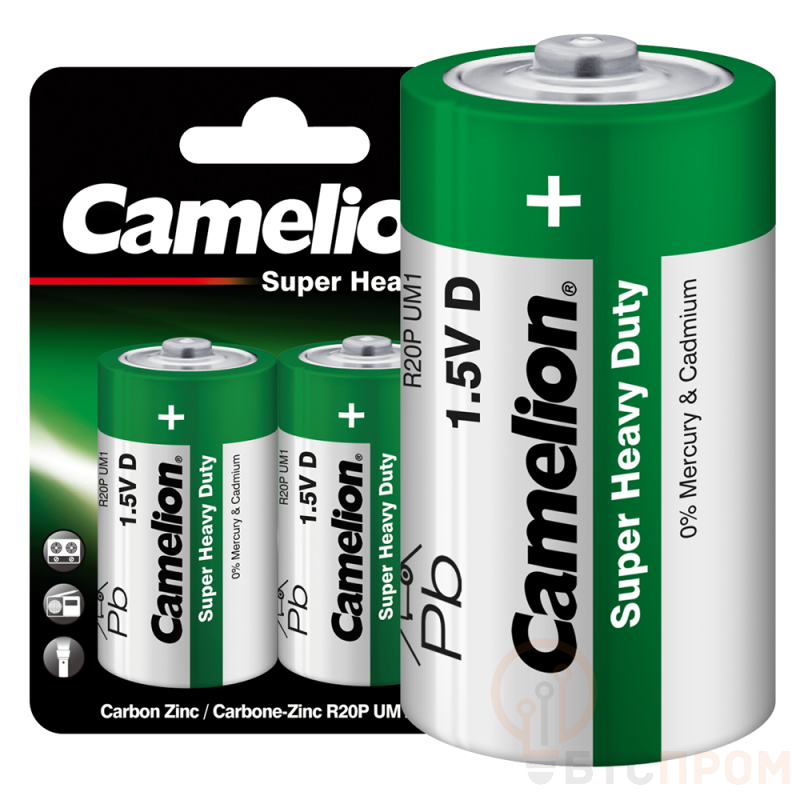 Солевые батарейки Camelion предназначены для устройств с равномерным и невысоким энергопотреблением (настенные часы,пульты дистанционного управления, игрушки, фонари и др.) Батарейка Camelion R20P-BP2G, напряжение 1,5В, емкость 5600 мА*ч, кол-во в упаковке 2 шт., размер упаковки 84х114х34 мм, использовать при температуре от -18 до + 55 °C, хранить в сухом помещении при температуре от +15 до +25°C. Срок хранения 3 года.