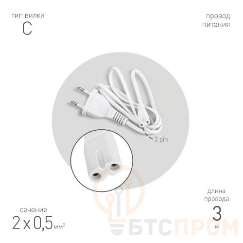 Изделие подходит для питания светодиодных лент, LED-светильников, аудио- и видеоаппаратуры (ноутбуков, мониторов, принтеров), игровых консолей и другой бытовой и офисной техники. Кабель соответствует стандартам безопасности, обеспечивает стабильную передачу электроэнергии и отличается долговечностью. Идеальное решение для организации освещения в торговых залах, офисах, дома или на производстве.