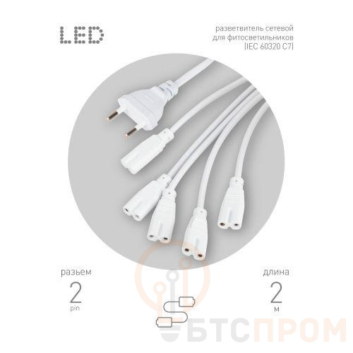 Разветвитель сетевой для фитолампы FITO 5х IEC C7 (2 pin) 2 м для подключения 5 светильников Эра Б0060525