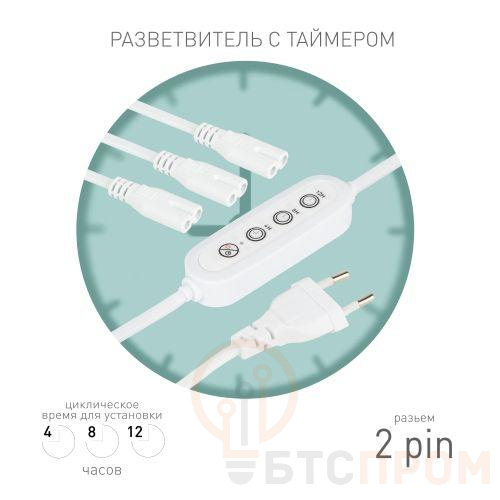 Разветвитель сетевой для линейных светильников 3х IEC C7 2pin 2m+timer на 3 точки с таймером 4; 8; 12H Эра Б0066933